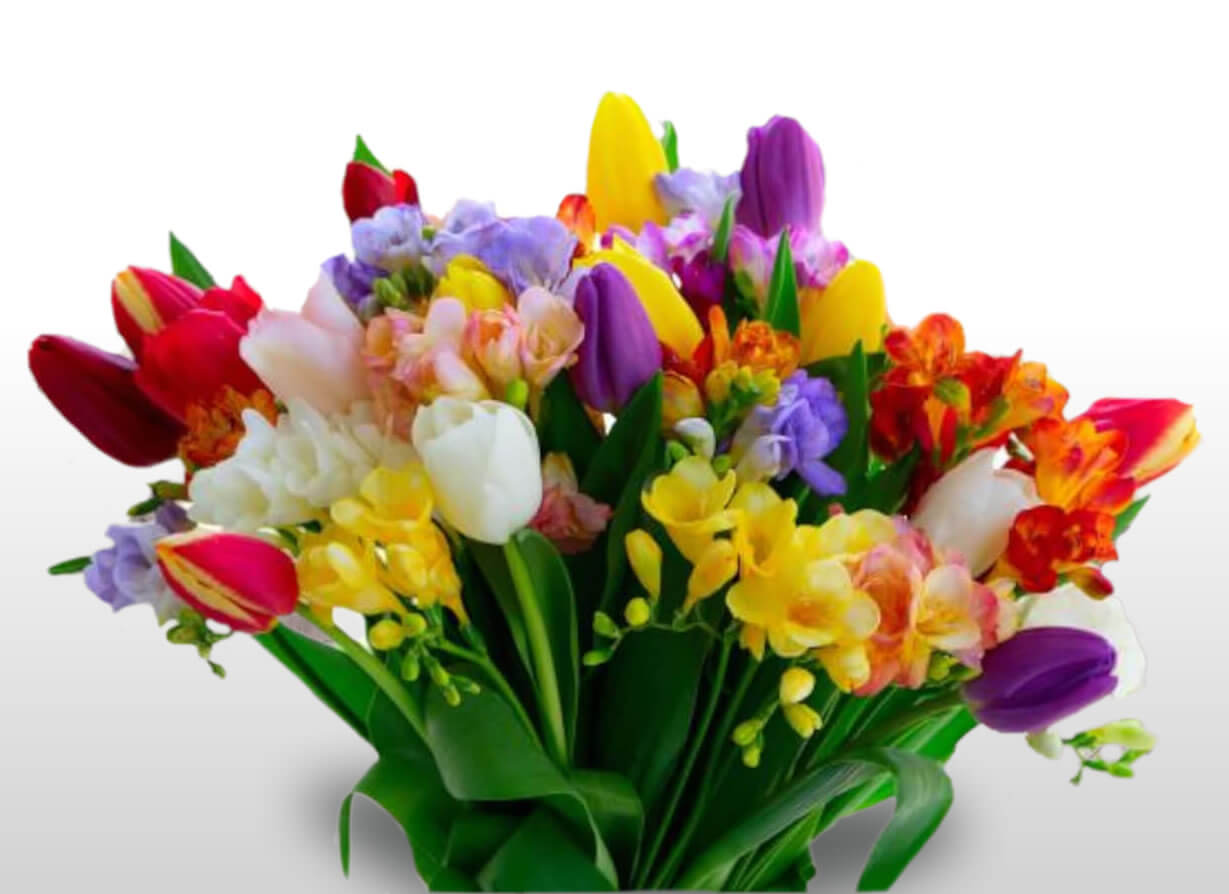 I colori accesi e vivaci di questo Bouquet di Fiori freschi primaverili e Fresie ricorda le facciate allegre e colorate delle case di Burano. Un’armonia di dettagli e petali e profumi sofisticati che richiama le trame preziose dei merletti di Burano.